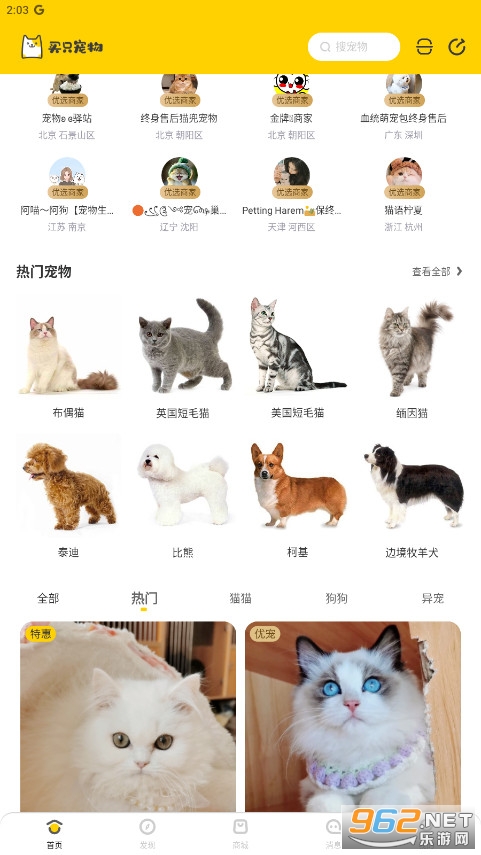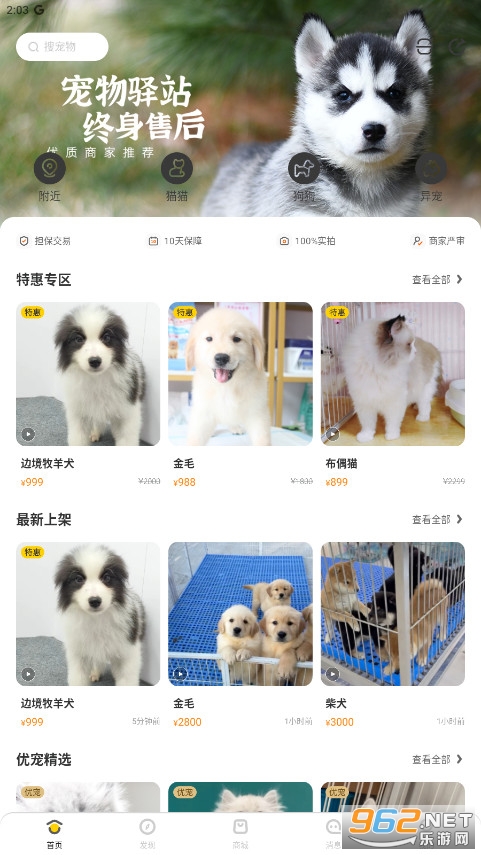 全方位服务:除了宠物交易,平台还提供养宠知识、用品商城等服务,满足用户全方位的养宠需求。