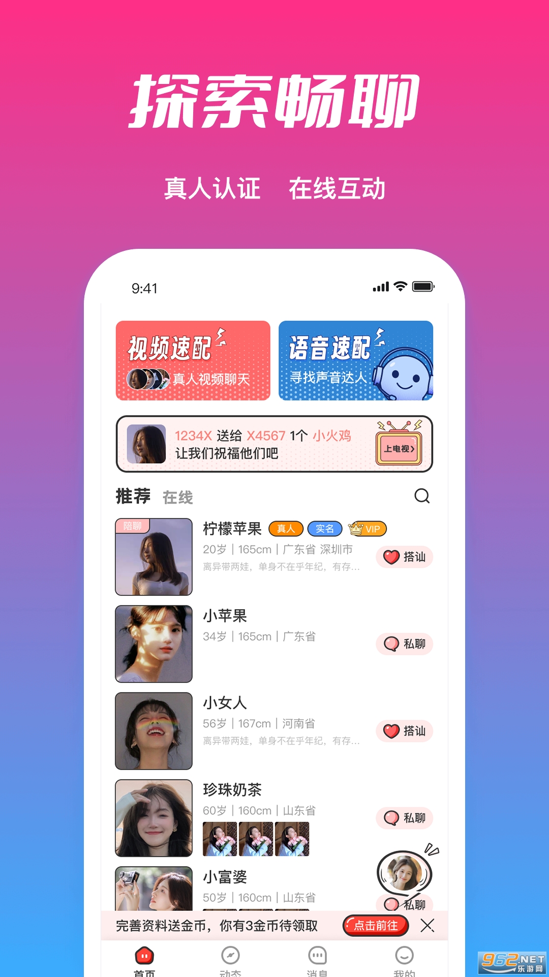 必聊app是一款同城附近交友约会软件,为大家提供了一种自由选择线上高颜值妹子语音聊天和视频约会的平台,能够帮助用户找到同城附近的单身异性。通过这个功能,用户可以更轻松地结识自己附近的人,并有机会展开约会活动。