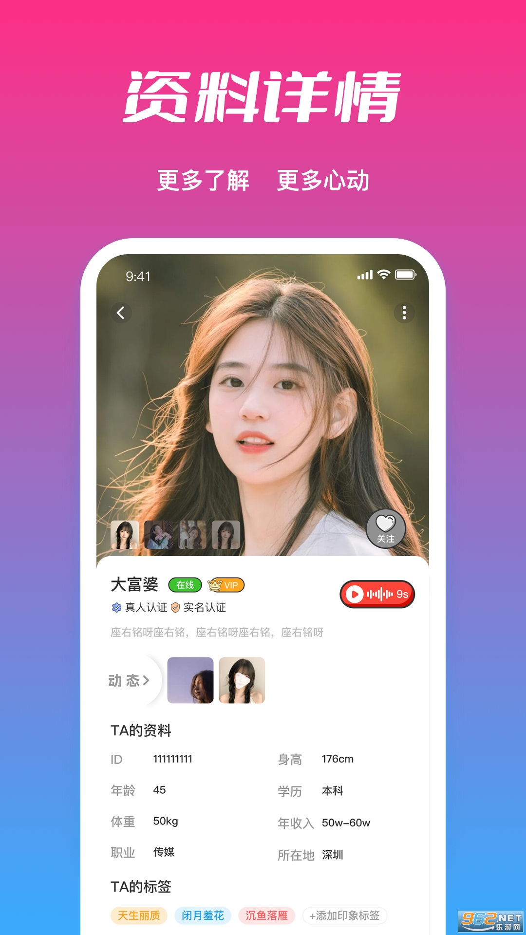1、用户可以完善自己的个人资料,包括个人照片、兴趣爱好、自我介绍等;