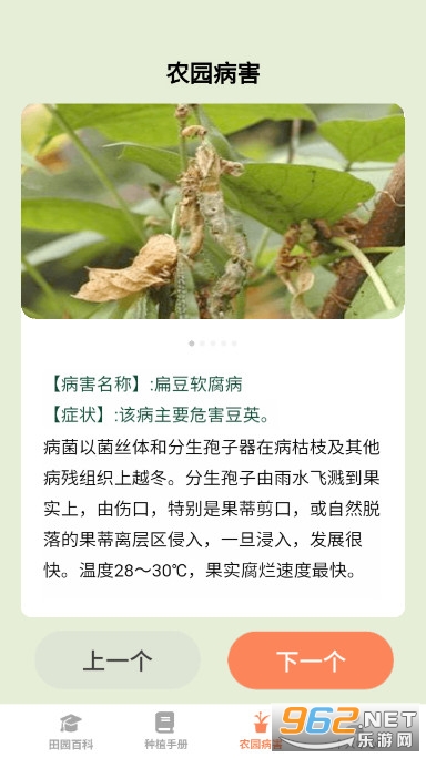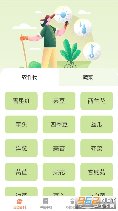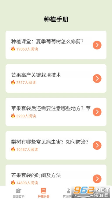 田园手册是是一款极具实用性和科学性的农作物种植百科知识软件,提供了一站式的农业解决方案,整合了大量权威的农作物蔬菜种植知识,包括不同农作物的生长习惯、适宜种植的气候环境、对病虫害的防治措施等内容,将科学的种植理论用通俗易懂的形式呈现出来,极大地提升了农民的生产效率和农产品的质量。同时,该软件还提供了一些非常实用的种植技巧和方法,提供农业知识科普,帮助农民提高农业生产技术水平,推动农业现代化发展,让农民们能够更好地应对不同的种植难题。