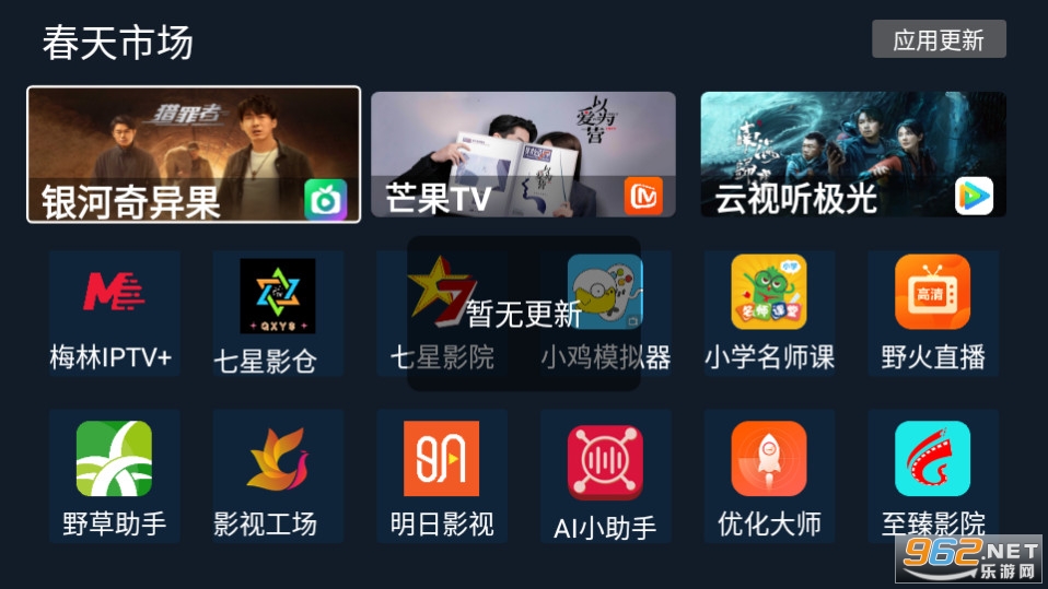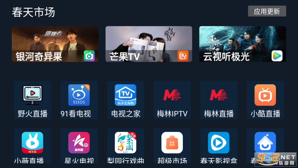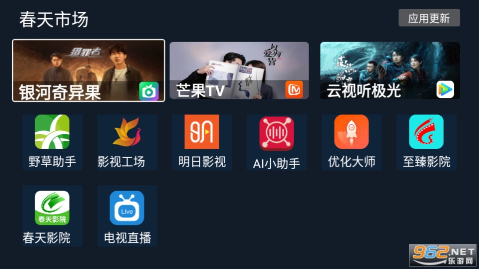 1、春天市场是为电视用户量身定制的应用市场,界面简洁明了,操作方便快捷。