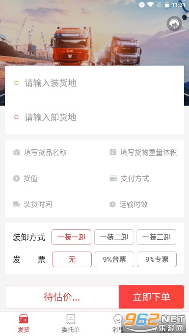 填写货源基本信息发货,即刻匹配海量车源。设置常用路线,发货更加迅速。