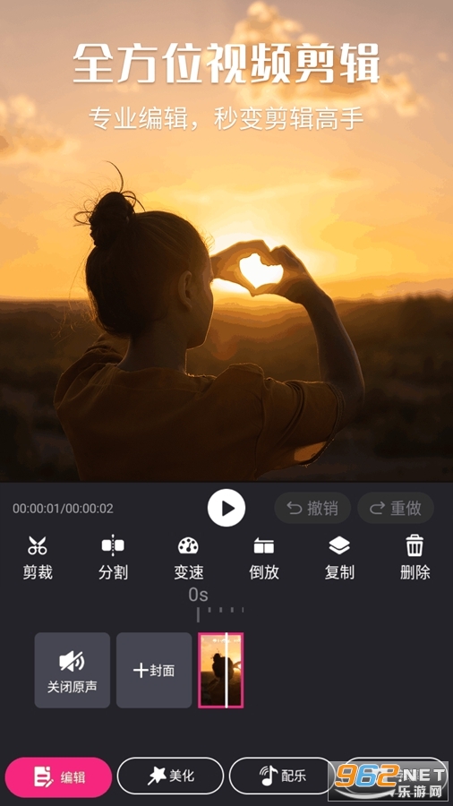 视频剪辑精灵-专业为爱剪辑之人打造,专注于视频剪辑、视频编辑、视频制作、视频美化领域,可以快速剪裁视频、分割视频,还有视频变速、视频倒放、音频剪辑、音频提取等功能,界面干净易辨识,操作简单快上手,一秒让你的短视频“变身”。还可以为您的视频添加滤镜、字幕、配音,音乐,更有超多效果等你创造,时尚艺术缺一不可让您掌上就做自己生活的“导演”。