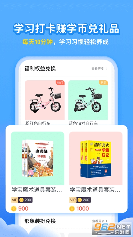 学习打卡还能领学币,免费兑换多种实物礼品、卡通形象、皮肤装扮,激发