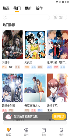 1、推送全网最新最热的漫画资源,供用户在线免费观看