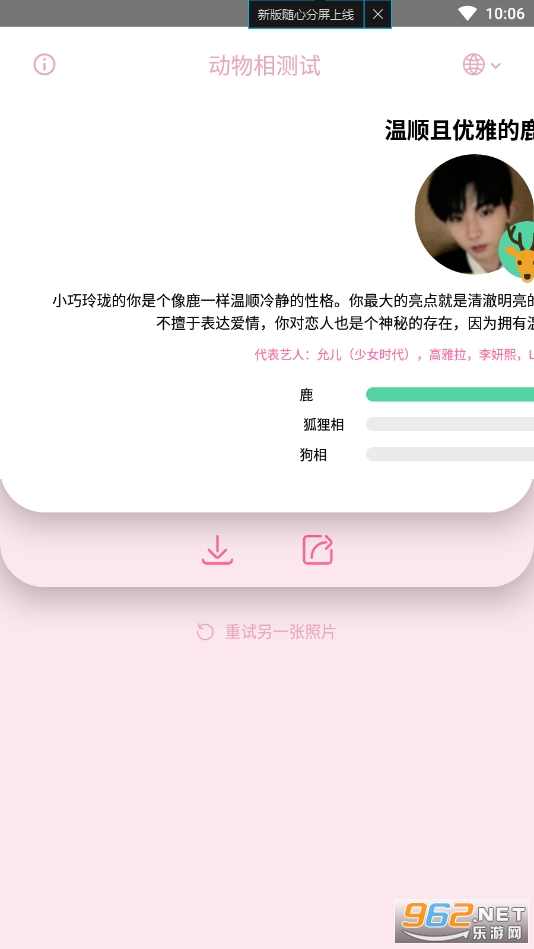 动物形象匹配:软件能够根据用户的面部特征,精确寻找与之最相似的动物形象。