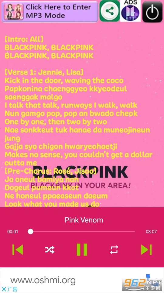 blackpink popular song app是一款可以免费听blackpink热门歌曲的音乐软件,这里汇聚了blackpink所有的专辑歌曲,提供的每一首歌里面都带有歌词,在没有网的情况下也可以无限畅听,该软件可以直接在后台运行,不会影响刷等,所有歌曲还可以免费下载。