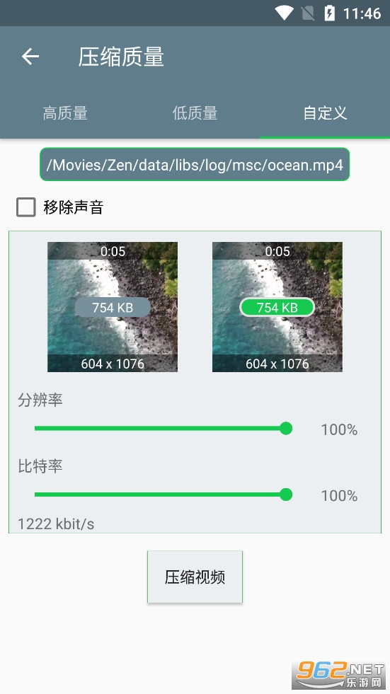 高质量、低质量或者自定义压缩视频