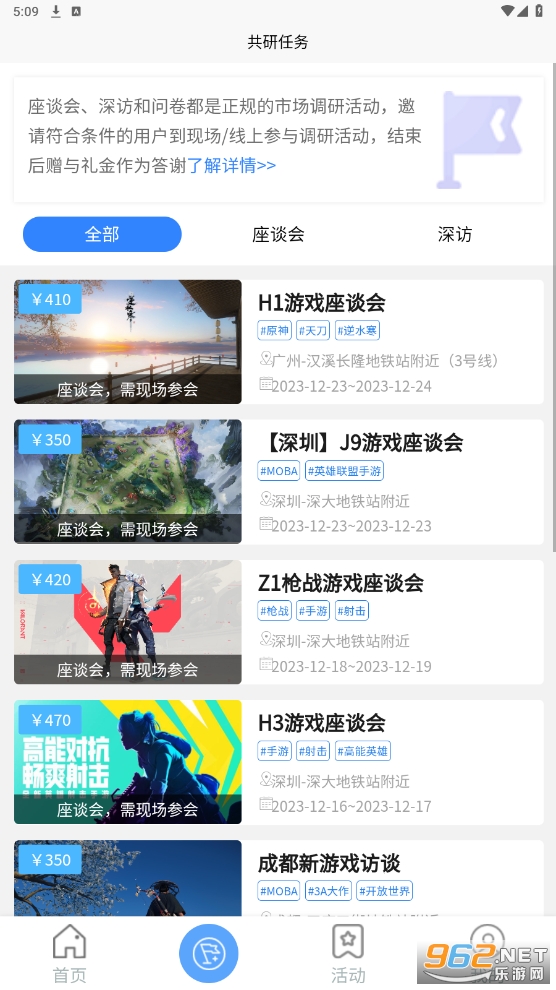 平台实时发布最新的游戏座谈会、定量问卷等共研任务,让玩家深入参与游戏用研过程