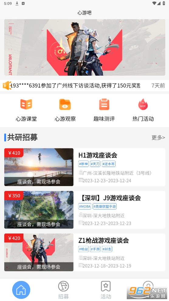 心游吧是一款游戏共测共研平台,致力于为玩家提供各类游戏市场调研,体验测试,策划面对面等活动,玩家参与活动即获得丰厚奖励!