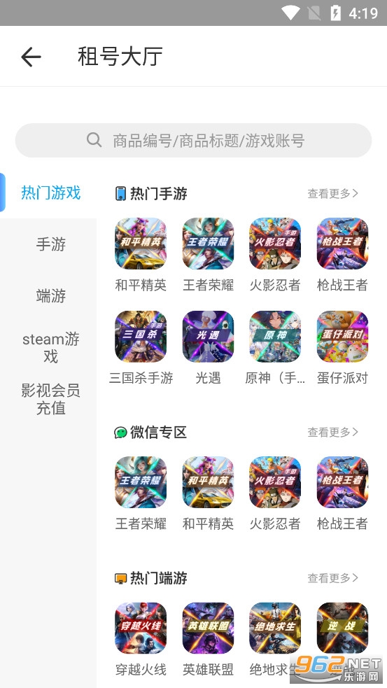 1.上千款热门游戏,数十万精品游戏账号供租。
