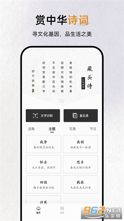提供唐诗、宋词、元曲、古诗、楚辞、全唐诗、全宋词等经典之作,帮助你学习诗词的注解、释义和鉴赏。它像一条梦想的长江、灵魂的黄河,对人民潜移默化,陶冶情感,哺育了一代又一代的华夏子孙。