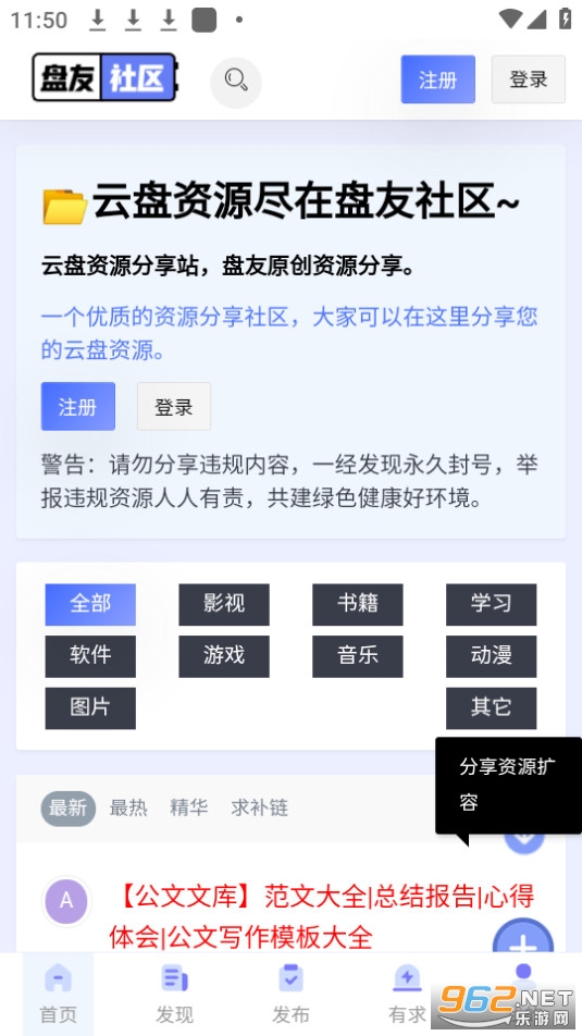3、无论是工作、学习还是娱乐,盘友社区都能满足用户的需求。