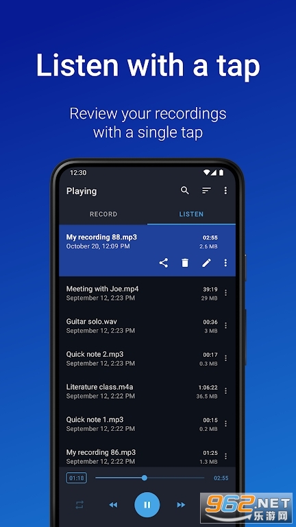 正如这个软件的名字一样:Easy Voice Recorder——一款易用且简单的音频录制工具。并且它十分可靠,十分快速,体验流畅,且满足了您的所有需求。