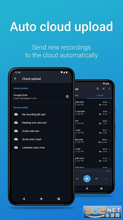 ★ 自动将新录音上传到您的 Google Drive, Dropbox 或者 OneDrive。