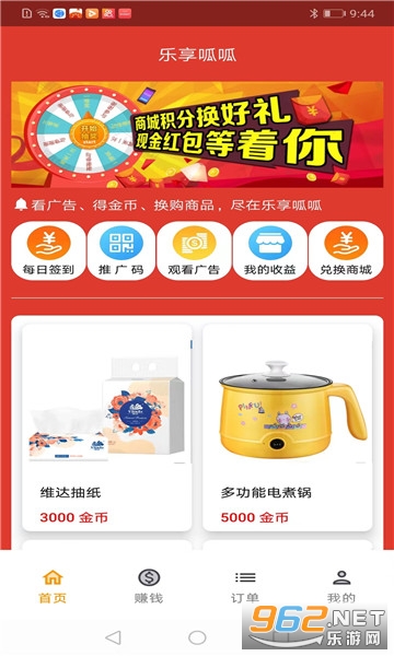 乐享呱呱是一款在线推广赚钱的手机软件。用户只需要在平台上领取相应的推广任务即可赚取金币;看广告,得金币,商城积分兑换好礼尽在乐享呱呱;用户还可以查看自己的任务订单,动动手指即可赚钱。