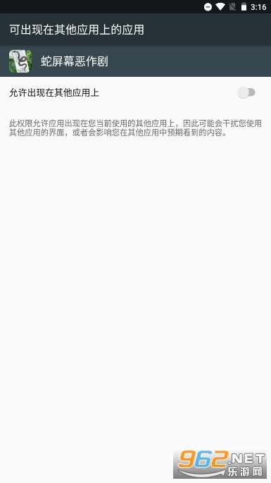 这样一来你就需要到权限设置页面里去开启“显示悬浮窗”的权限,就能够让蛇显示在桌面上了。