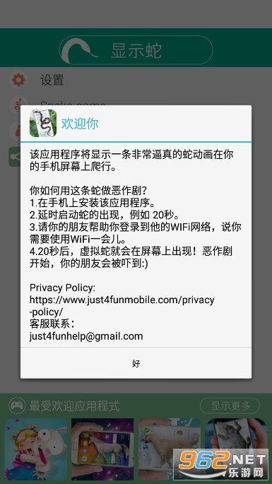 真棒蛇 - 这恶作剧恶作剧有一条蛇在屏幕上大声吼叫,害怕朋友的蛇。这个恶作剧是恶作剧,欺骗大人。使用一个真棒恶作剧谨慎,因为恶作剧令人震惊的大蛇。你可以选择什么时候让你的蛇弹出电话。