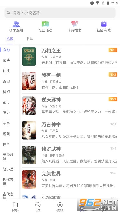 点击上方的搜索框就出现如下界面,这里有男频和女频的分类,点击进入就是更加详细的分类推荐,这里就不多说了,具体的
