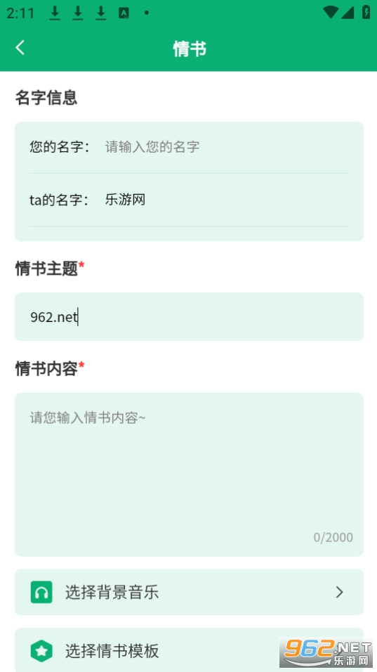 3、色彩选择:提供了多种色彩搭配选择,保证了情书更个性,色彩更加鲜活;