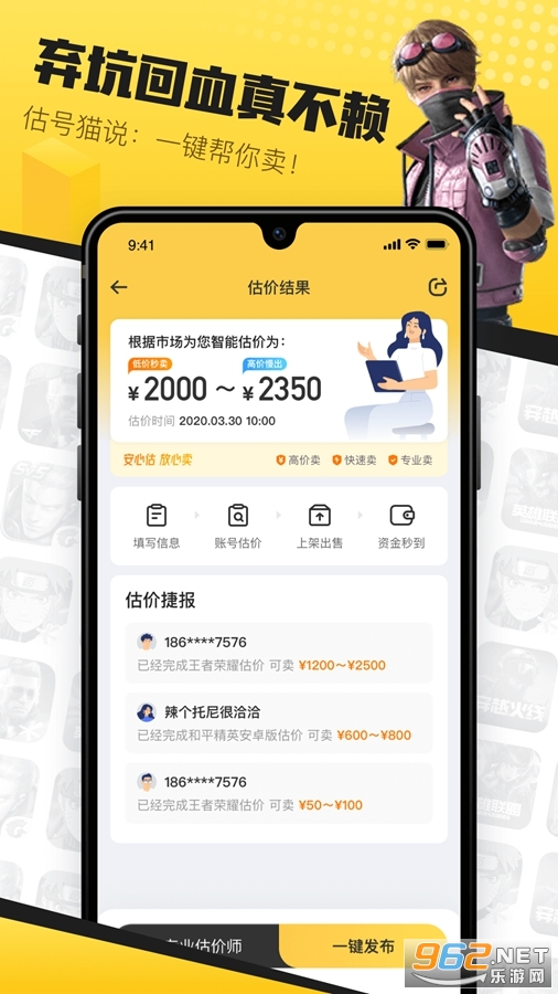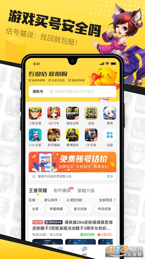 估号猫APP,是专门为游戏玩家开发的,专注游戏账号在线评估和账号交易服务。