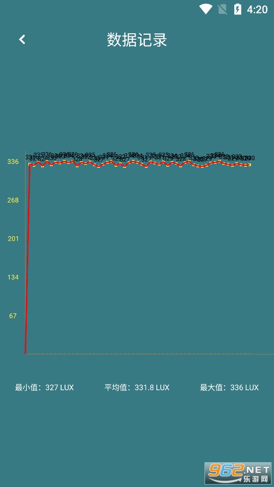 2、测量统计模式,支持时间段内的光照变化趋势,计算出*大/小峰值和平均值;