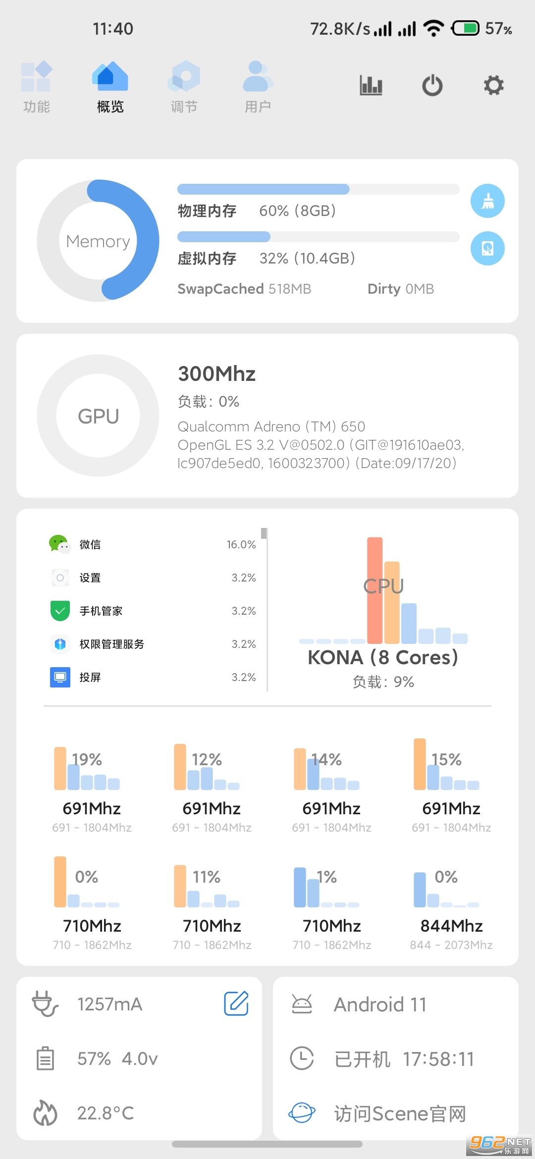 4、CPU控制:调整设备性能,从而达到省电或提高流畅度的目的。