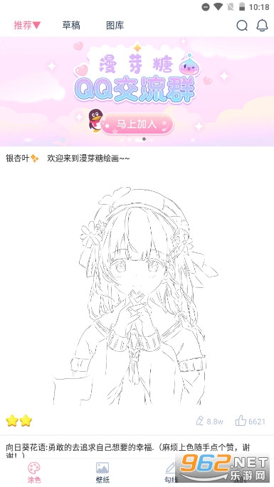 【海量素材】漫芽糖指绘软件提供海量精美素材,各种可供涂色的二次元动漫线稿加上你的创意,等于完美作品。放松减压的同时,享受美感的愉悦。