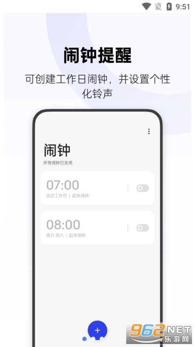 支持桌面窗口小工具以及下一个闹钟响铃时间提示等功能。