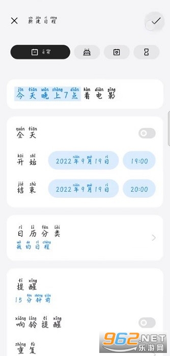 提醒:日程提醒,待办事项,生日提醒,生理期,任务打卡,购票提醒…