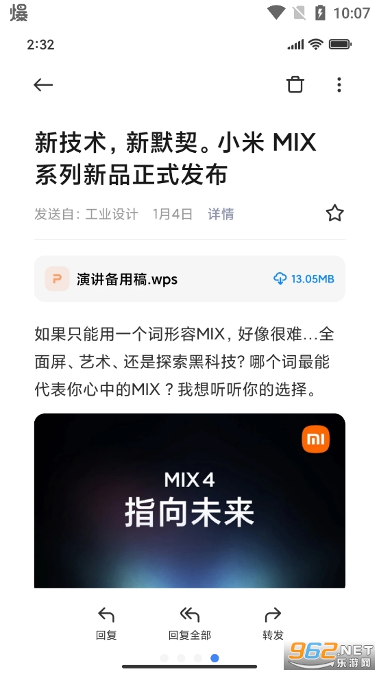 基于安卓系统定制研发的MIUI系统,一直被大多数网友所认可。对于商务人士来说,E-mail也是必不可少的手机应用,《小米电子邮件》支持会话模式,打破了传统交互,往来邮件一目了然,像聊天一样收发邮件。
