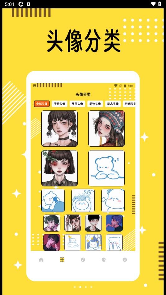 3、通过首页的分类导航或搜索框,用户可以快速查找并下载喜欢的头像、壁纸或表情包,所有资源均可一键保存至手机本地相册。