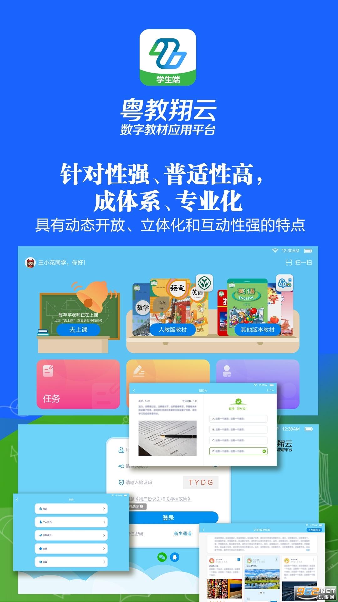 《粤教翔云教育平台3.0学生端》为老师和学生提供一站式的教学服务,提供以数字教材为核心的智慧学习整体解决方案,增加了课堂授课互动、资源整合与分享、教研成果交流等实用的功能,大大的提升用户的整体使用体验。