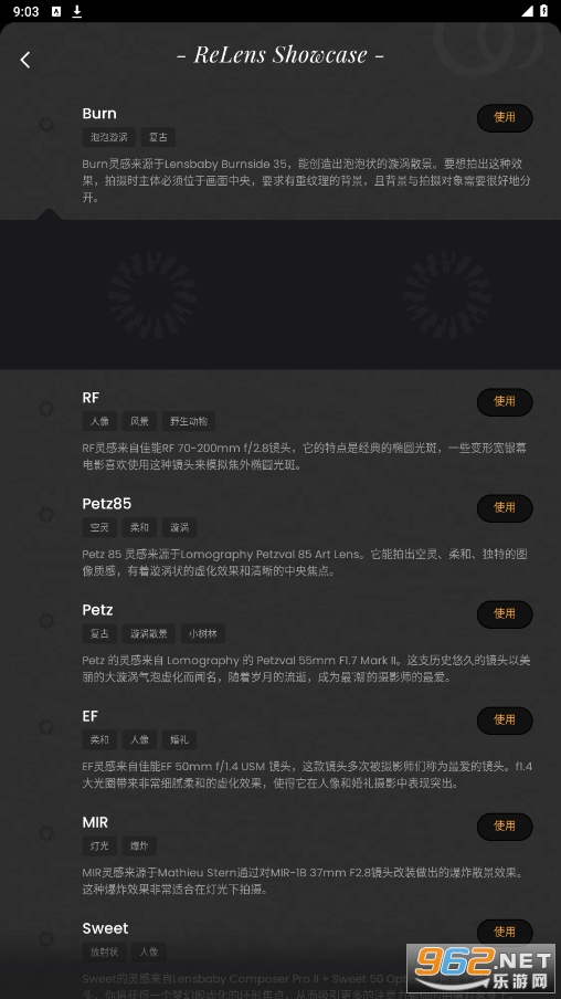 ReLens是一款可以在照片中添加模糊背景效果的软件,它能够模拟出大光圈的效果,让照片更加美观。此外,ReLens还提供了一些滤镜和调整工具和不同相机镜头,帮助用户对照片进行进一步的美化。ReLens大光圈破解版可以免费使用所有功能,无需付费购买订阅。安装后即可直接打开使用,没有任何限制。