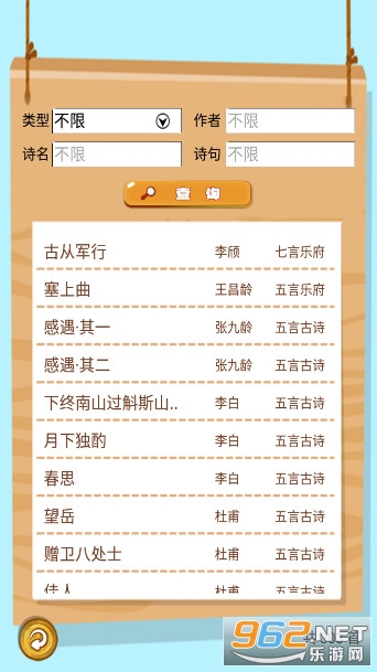 配合小学的课本内容,对古诗进行分类。让同学们更清晰的找到、学习、复习古诗。
