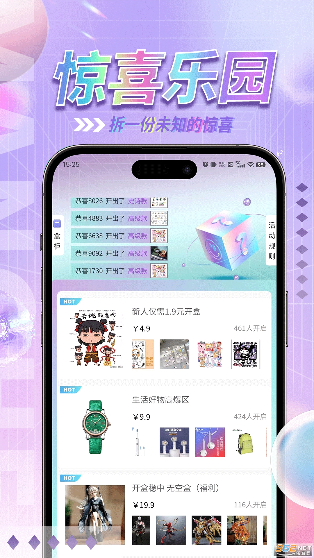 惊喜乐园app,让客户放心买的盲盒app,价格实惠、数量繁多、款式新颖、正品保障的盲盒平台。