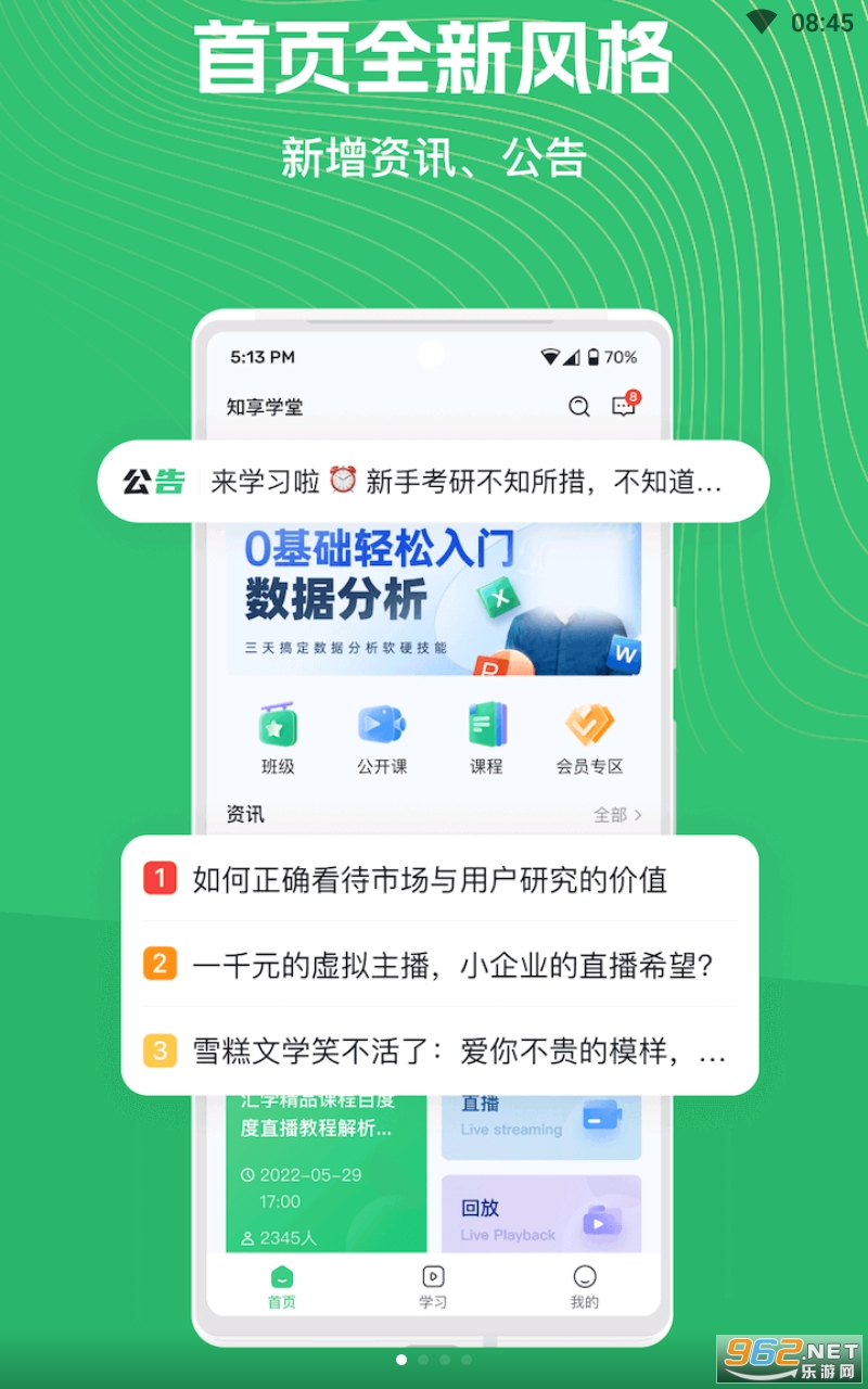 《知享学堂app》由一支专业的教育团队开发,他们深入研究了各年龄段的学习特点和需求,并利用人工智能和大数据技术,为每一个用户量身打造了独一无二的学习路径。无论是儿童、青少年还是成年人,都能在知享学堂找到适合自己的学习资源和学习方式。