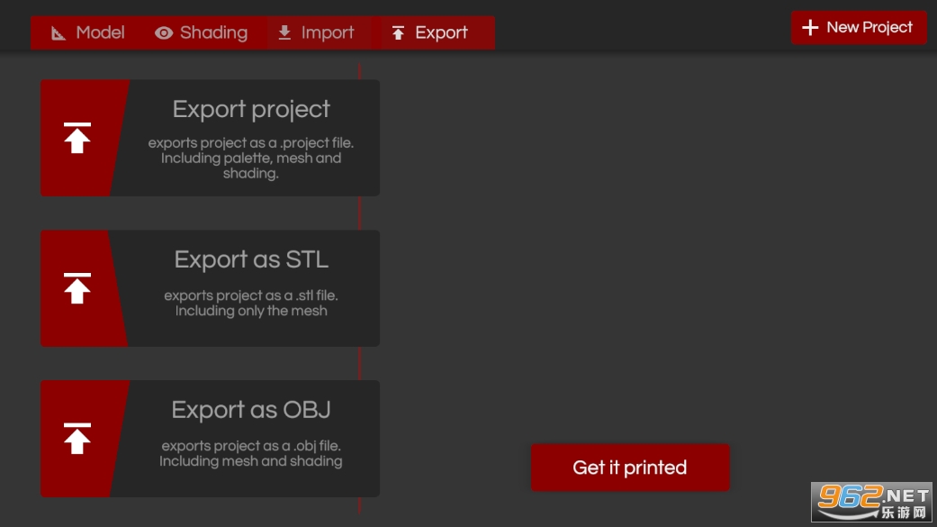 当您对模型感到满意时,可以将其导出为。stl,。obj或. project,以便以后编辑它。