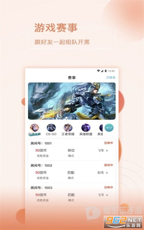 2、应用与各大游戏官方进行合作,用户可在此平台参与游戏比赛,获得大量游戏奖励。