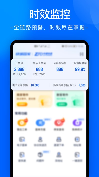 2、在首页常用功能如售后工单、面单充值、停发查询等选项,点击即可进入界面。