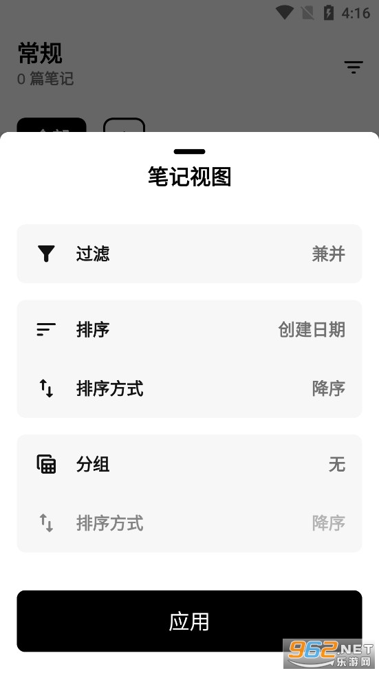 您可以按字母、创建日期、手动排序文件夹或笔记,按照标签或创建日期进行分组。