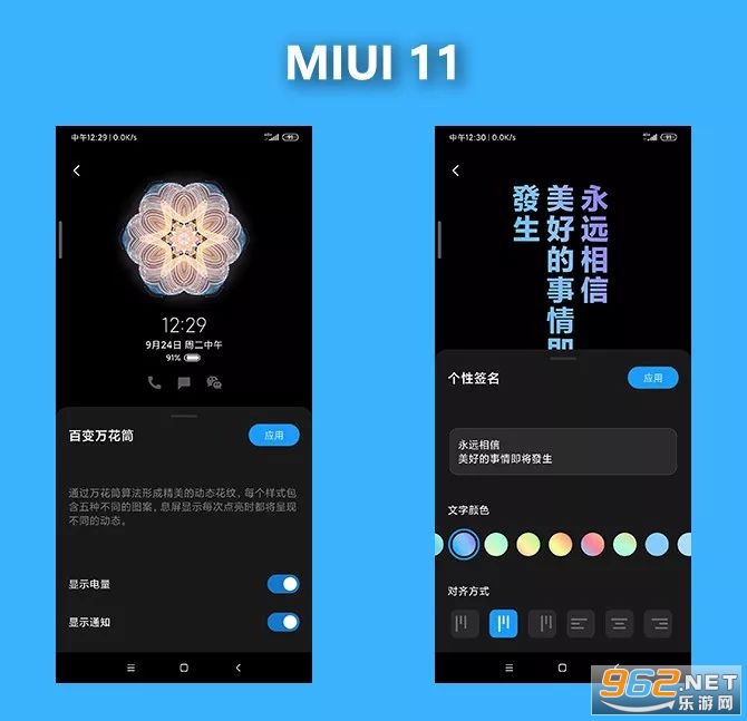 MIUI 11除了能息屏显示图案之外,这次的MIUI 11系统还可以把屏幕作为呼吸灯的显示来提醒用户有新消息,而且提醒的方式特别的炫酷。类似于呼吸灯的样子,但是这个是整个屏幕都会显示,所有视觉效果看上去更加震撼。