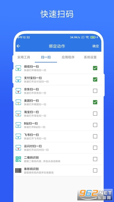 如:双击桌面即可打开扫一扫、双击桌面即可打开某个应用、双击桌面即可显示某张图片、双击桌面即可快速拨打电话、双击桌面即可快速打开某个网页…