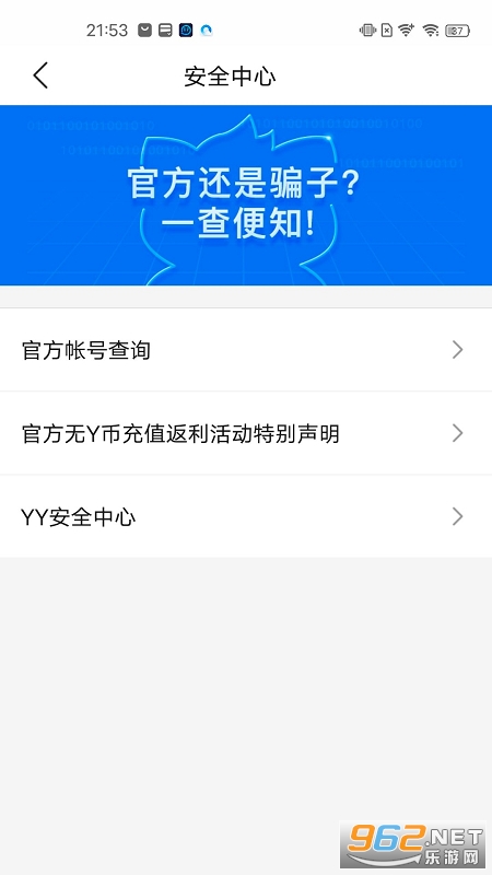 YY安全中心是YY账号管理工具。它能发送账号异常通知,让您随时随地可以修改账号密码,查询账号的登录日志,为您的账号提供全方位的安全保护服务。