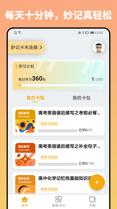 妙记app是一款非常好用的学习记忆工具,在软件上面有着非常多的学习卡包,用户们可以在这里自由学习,软件上面还能制定自己的学习计划,帮助用户们养成学习自律的习惯,提高成绩,用起来十分得不错,有需要的朋友们快来下载体验吧!
