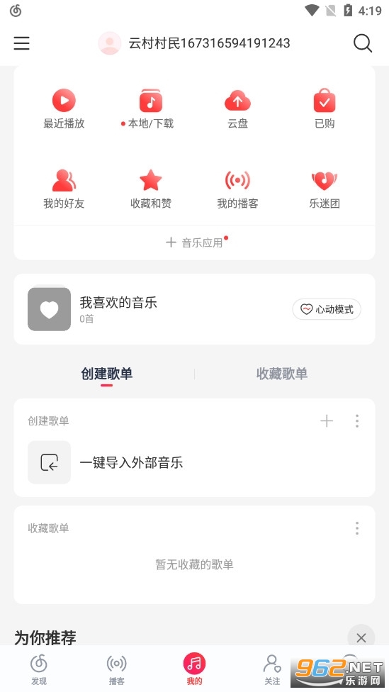 常用的功能都比较齐全,每日推荐、听歌识曲、云盘音乐都有,没有乱七八糟的东西。