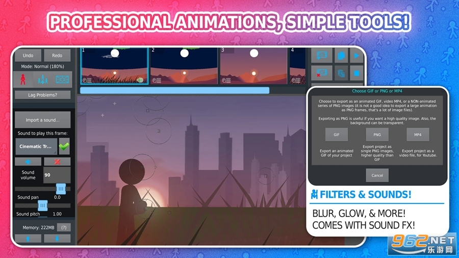 实用的火柴人动画制作软件,可以利用软件来轻松的制作各种简短的动画,有着众多的模板可以使用,可以自由的设计各种动作和场景,可以自由的导出mp4视频,有需要的朋友可以下载试试。