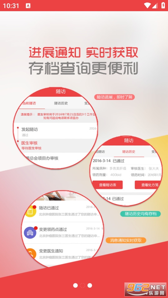 -让入组患者与注册医生之间实现远程医学随访,减少了传统大病随访为患者及家属带来的不便,以提升随访效率。