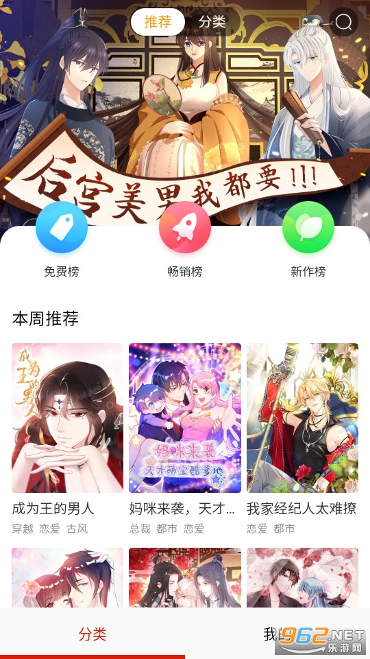 漫画分类:平台中的所有漫画在此都进行了分类处理,用户可以根据自己的喜好快速找到想看的漫画。