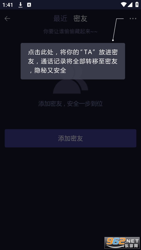 1、【密友】开启密友后,返回手机桌面,切换程序,手机摇一摇等立即进入隐藏模式,隐藏模式下所有密友相关信息、密友设置将隐藏不可见,后台不提醒密友推送消息。